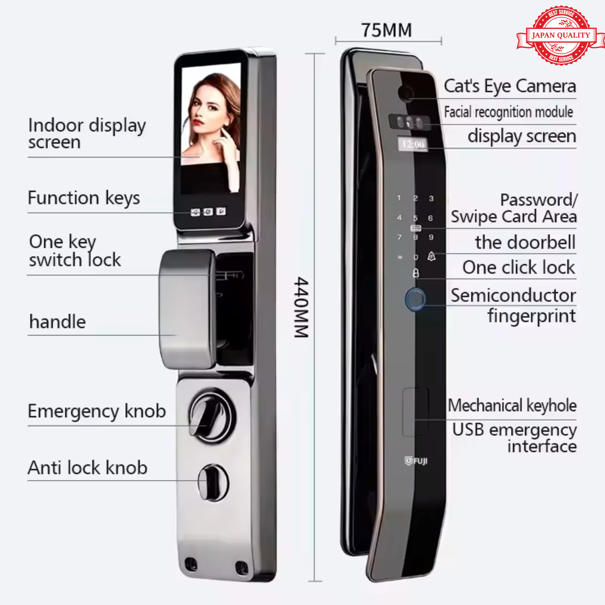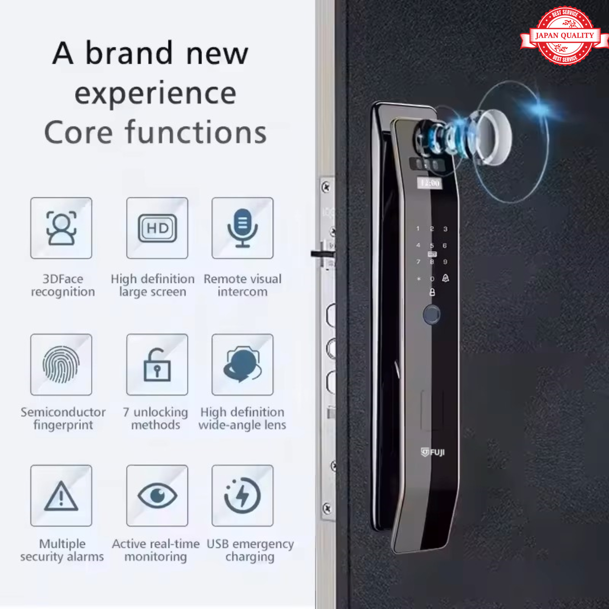 FujiSmartFS-A900FaceID指紋認証ドアロックは、2023年のFujiSmartブランドの非常に人気のあるバージョンです.FS-A900FaceIDは、3D顔認識技術と指紋技術を統合した新世代のロックラインです.最高のセキュリティを備えた最高品質のハンド機能を備えており、ご家族の安全を確保します。最新のFujiSmartFS-A900ドアロック製品には、3D顔認識、指紋、磁気カード、コード、メカニカルキー、電話アプリなどのロック解除機能が完全に統合されています。