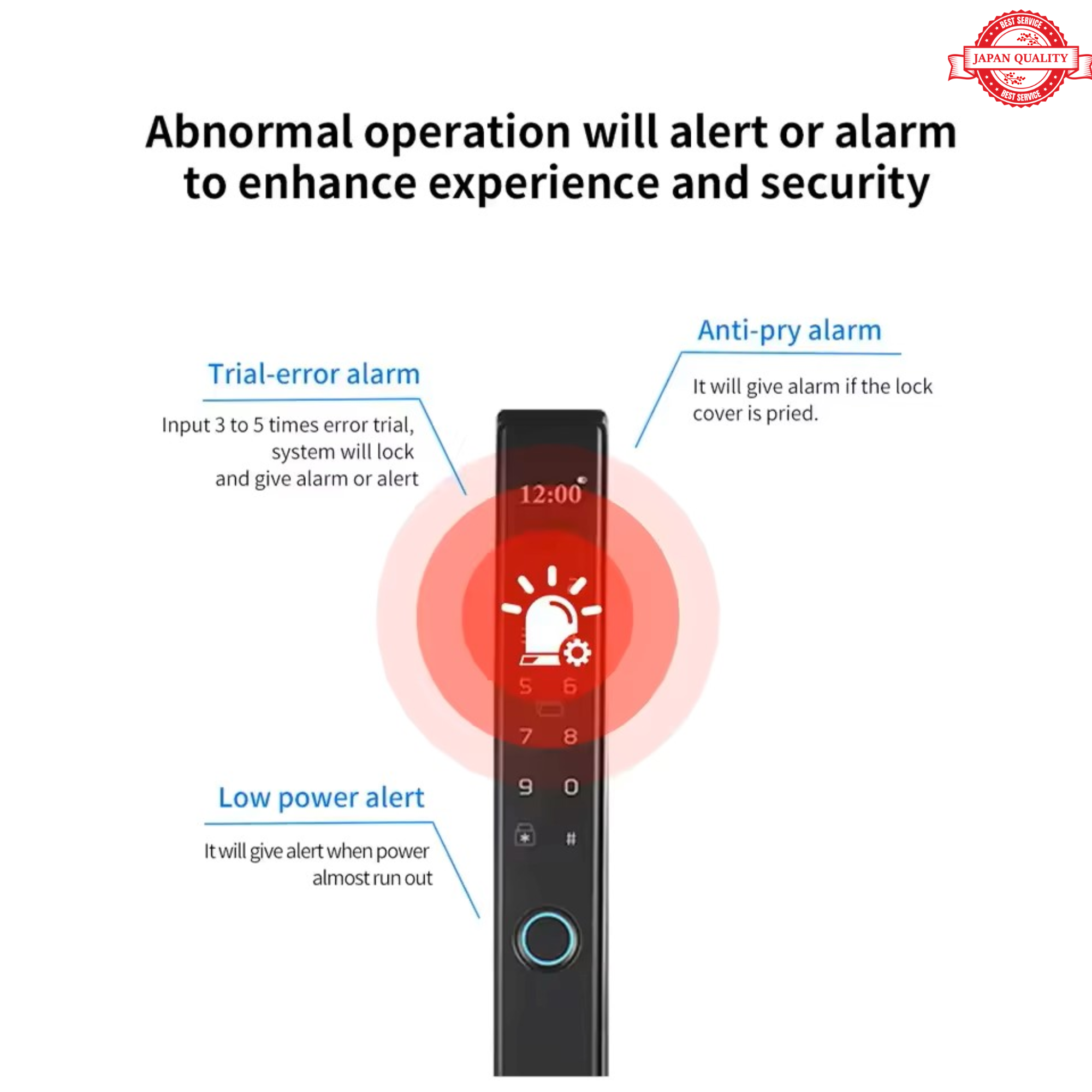- ロック外側表面: 高品質合金、強化ガラス